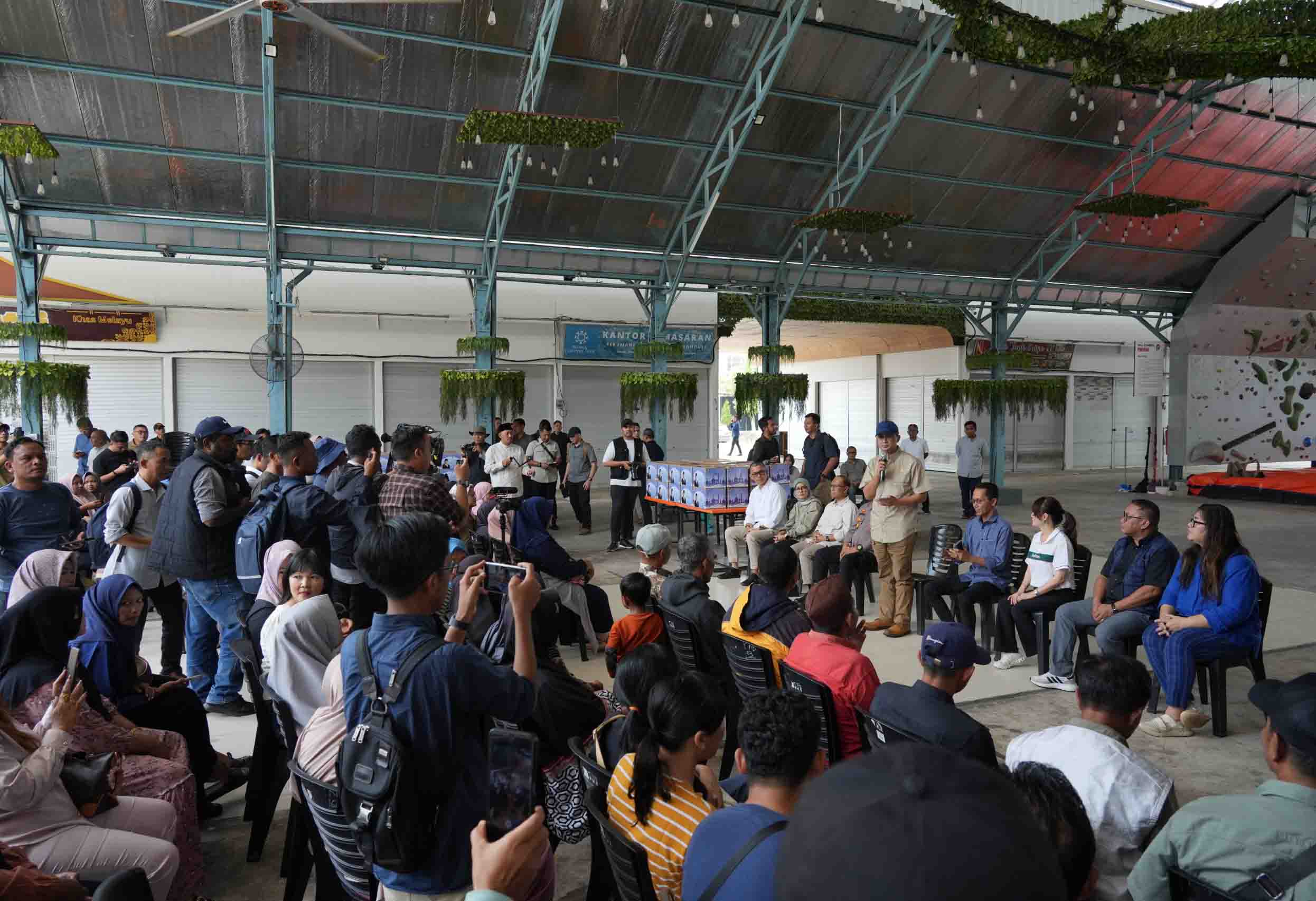 Kepala BP Batam Amsakar Achmad dan Wakil Kepala BP Batam Li Claudia Chandra mendampingi Menteri Transmigrasi berdialog bersama dengan warga Rempang yang berada di Tempat Penampungan Sementara (TPS) Buana Central Park.